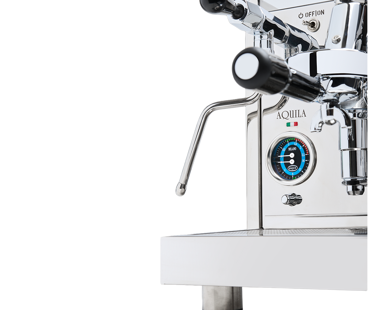 Progettata per offrire controllo totale, Aquila è dotata di manometro a doppia scala e rubinetti professionali a joystick: tutto ciò che serve per un’autentica esperienza da barista di alto livello.