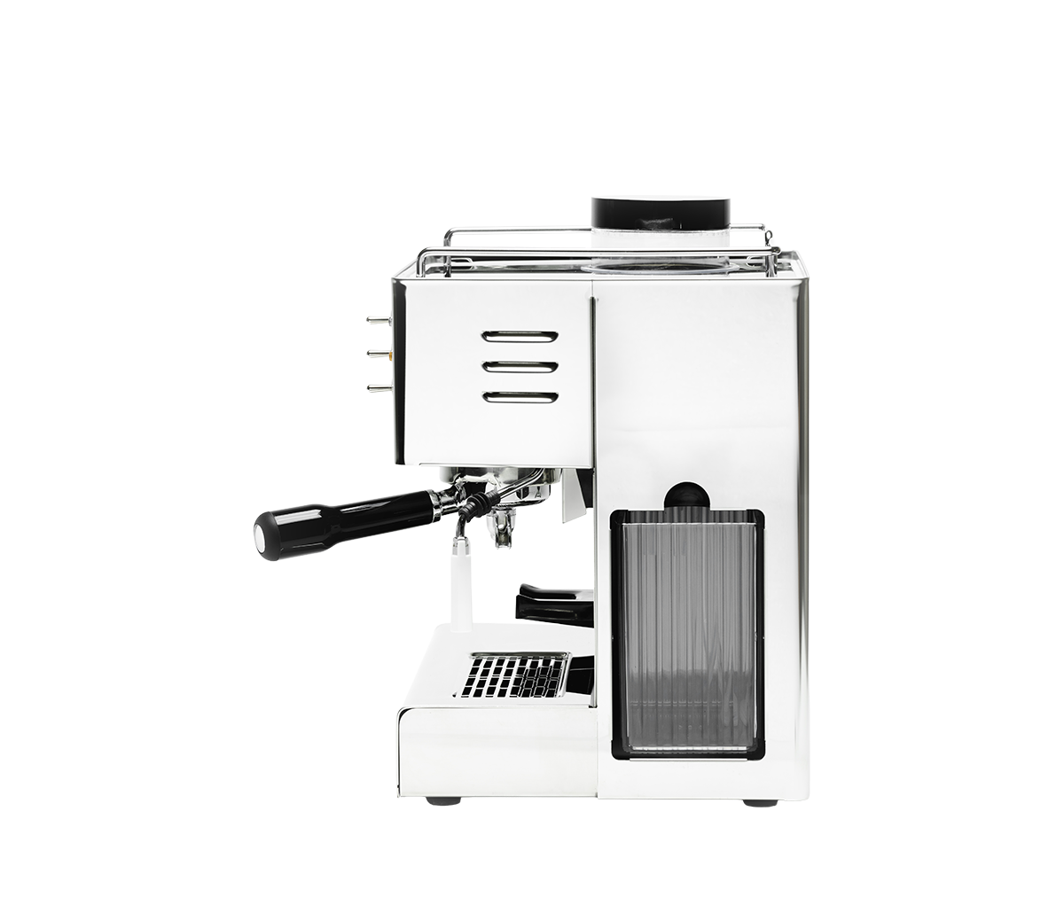 Compatta, versatile ed elegantemente realizzata in acciaio inox, Pegaso è la soluzione “tutto-in-uno” per macinare e preparare il caffè, ideale per chi desidera vivere la completa esperienza dell’espresso con il minimo ingombro. Dotata di macinacaffè integrato, Pegaso consente di macinare i chicchi al momento, esaltando aroma e gusto in ogni singola estrazione. Il manometro incorporato garantisce un controllo preciso durante la fase di erogazione, mentre la lancia vapore in acciaio inox con aeratore assicura una crema di latte sempre cremosa e vellutata, perfetta per cappuccini, latte art e molto altro. Il pratico serbatoio laterale da 1,8 litri e il design compatto e lucido rendono Pegaso un connubio di funzionalità professionale e stile senza tempo, da inserire con eleganza nella routine quotidiana del caffè.