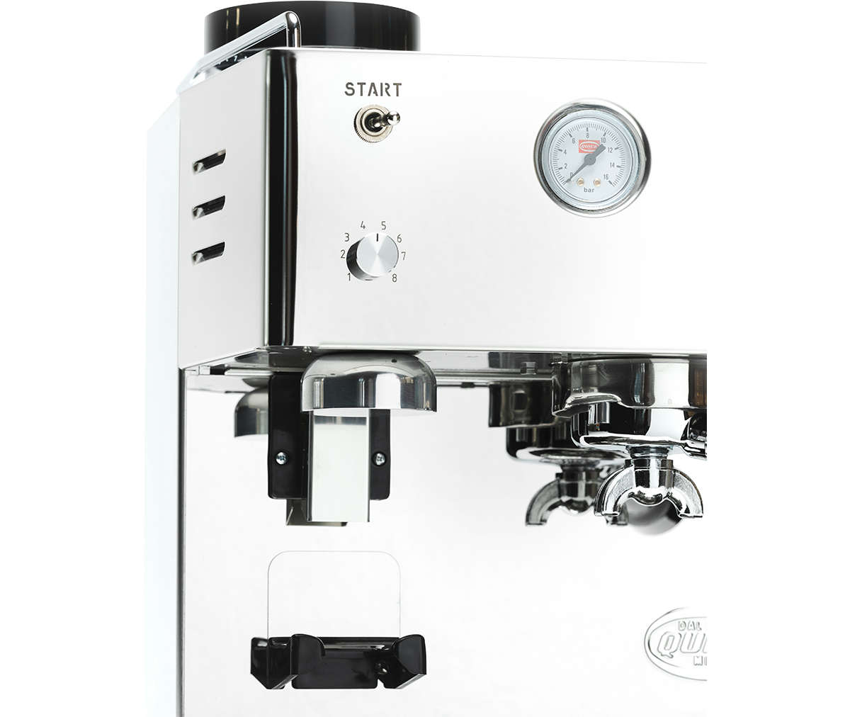 Quick Mill Pegaso unisce funzionalità ed estetica in un unico telaio in acciaio inox. Una vera stazione da barista in formato compatto, offre espresso autentico e crema di latte vellutata con stile e semplicità.